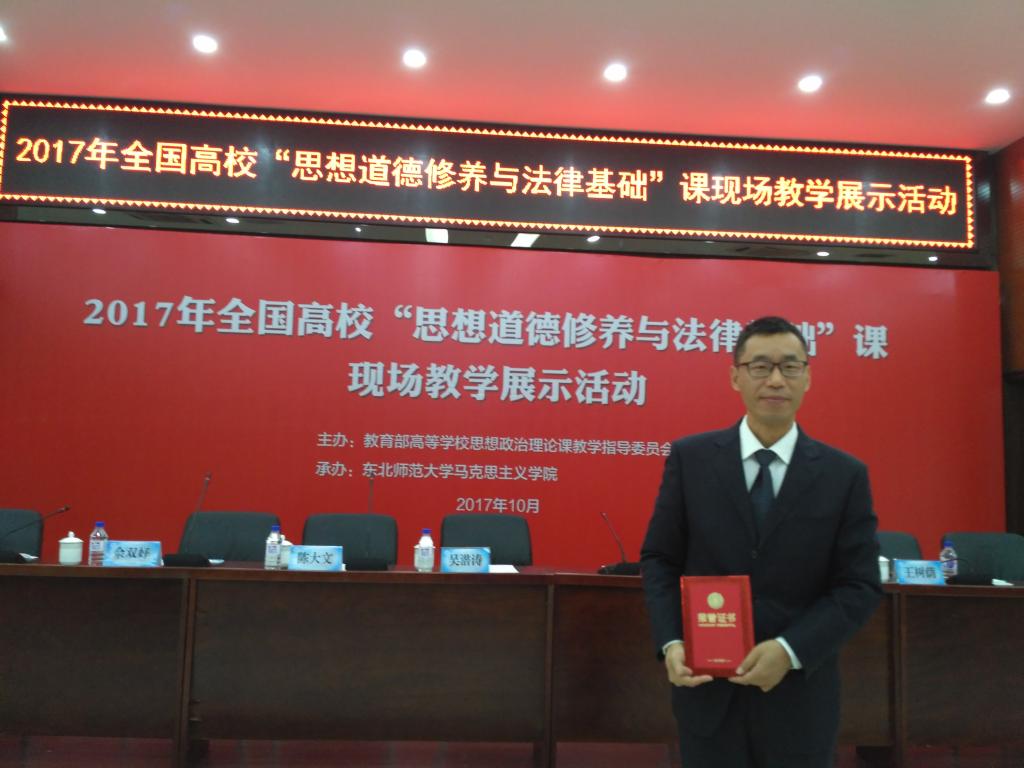 2017年10月14日至15日,由教育部高等学校思想政治理论课教学指导委员会主办的全国高校“思想道德修养与法律基础”课现场教学展示活动在东北师范大学举行。公司教师李志龙代表山西省参加了现场教学展示,并荣获“全国高校思想政治理论课教学骨干”的荣誉称号。
