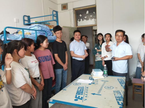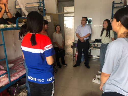 9月7日下午16:00,beat365唯一官网迎新工作圆满落下帷幕。为了解2019级新生情况,院党委书记王银、经理贾绘泽、院党委副书记孙学虎、副经理赵改萍以及四名新生政治辅导员一同前往新松小区员工公寓看望入住新生,送去学院对新生的慰问与关怀。