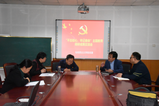 根据学校主题教育相关精神及要求,学院坚持问题导向,紧密结合工作实际,广泛向师生征求意见建议,开展“不忘初心、牢记使命”主题教育问卷调查、集体座谈会、个人谈心谈话等活动,扎实认真开展调查研究,形成调研报告。交流会上,各位院领导根据自己调研内容依次进行汇报交流。