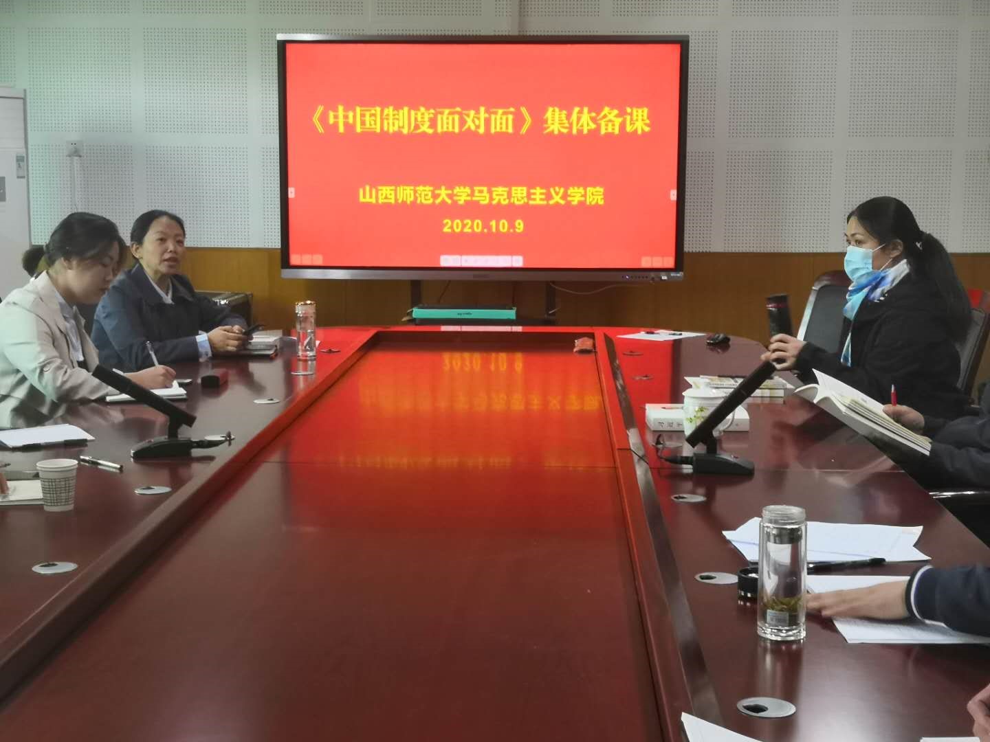 10月2日下午和、10月9日下午,beat365唯一官网在科学会堂A508会议室举行“中国制度面对面”走进思政课课堂的集体备课。全体教师参加,教学副经理赵改萍主持。运城职业大学李国娟、罗舒贤两位教师于10月9日下午观摩并参加讨论。