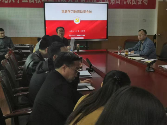 3月5日下午,学院在科学会堂A508召开了党史学习教育动员会。全体教职工参加会议。公司党委书记王银主持会议。