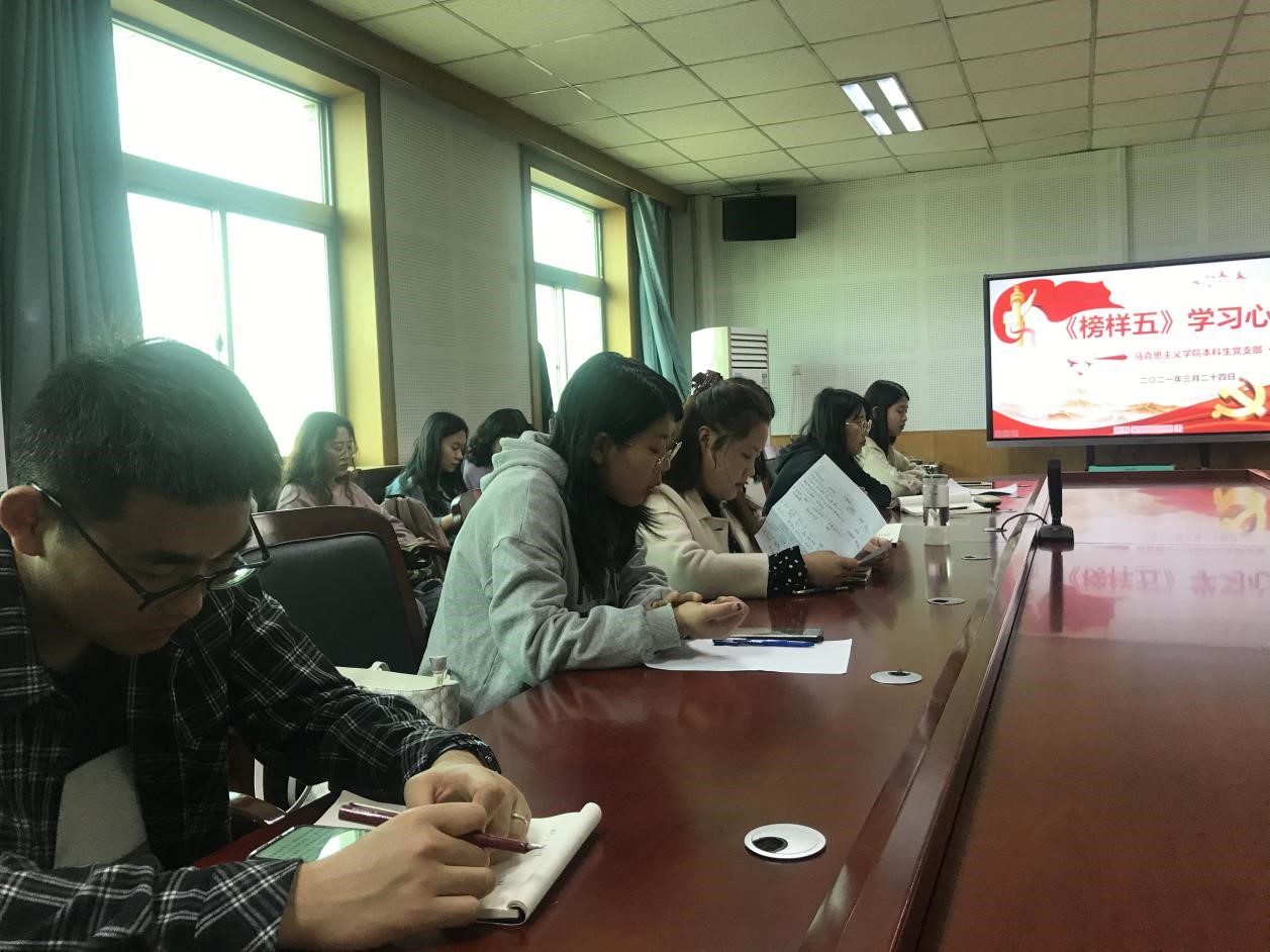 最后,支部书记张玉婷组织各党小组代表分享《榜样5》学习心得,并对建党百年活动策划进行评定,带领大家学习抗大精神,并要求支部成员认真研读《论中国共产党历史》。她提出以下三点希望,一是认真学史,以史鉴今。将“学史明理、学史增信、学史崇德、学史力行”十六字铭记于心;二是见贤思齐焉,要向榜样看齐,追求美好的思想品德,汲取奋发的力量,永葆奋斗精神;三是知行合一,投身实践。要发挥党员的先锋模范作用,主动担当,有所作为。