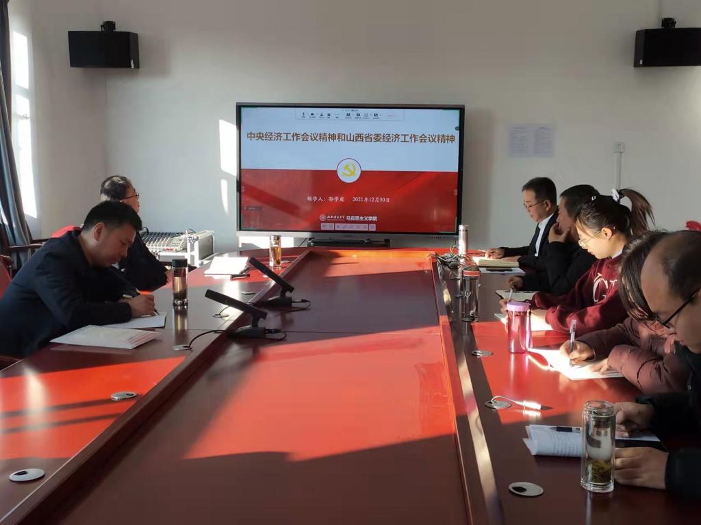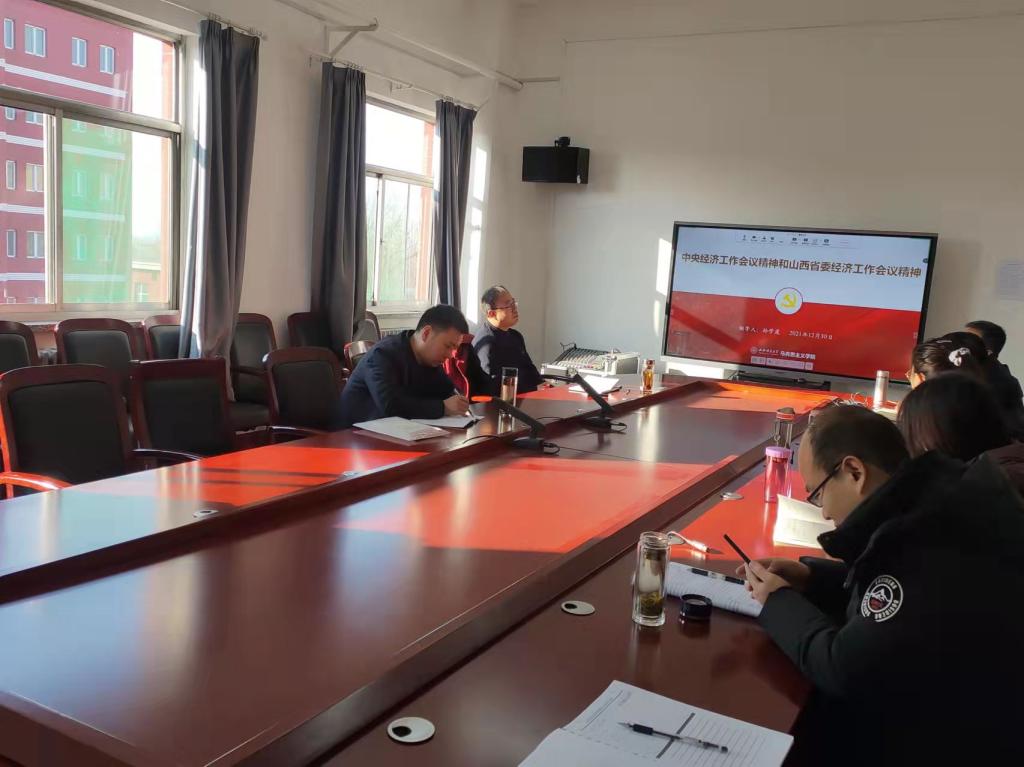 公司党委副书记孙学虎结合学院工作及发展实际领学了中央经济工作会议精神和山西省委经济工作会议精神。