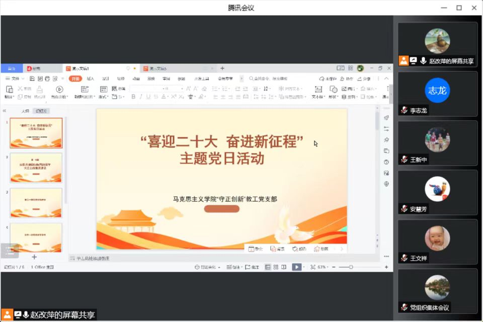 在中国共产党成立101周年之际,公司“守正创新”教工党支部于2022年7月1日晚7点半在腾讯会议开展“喜迎二十大 奋进新征程”主题党日活动。此次主题党日活动由支部书记赵改萍主持,支部全体党员参加。支部联系校领导beat365APP纪委书记党志峰莅临指导。