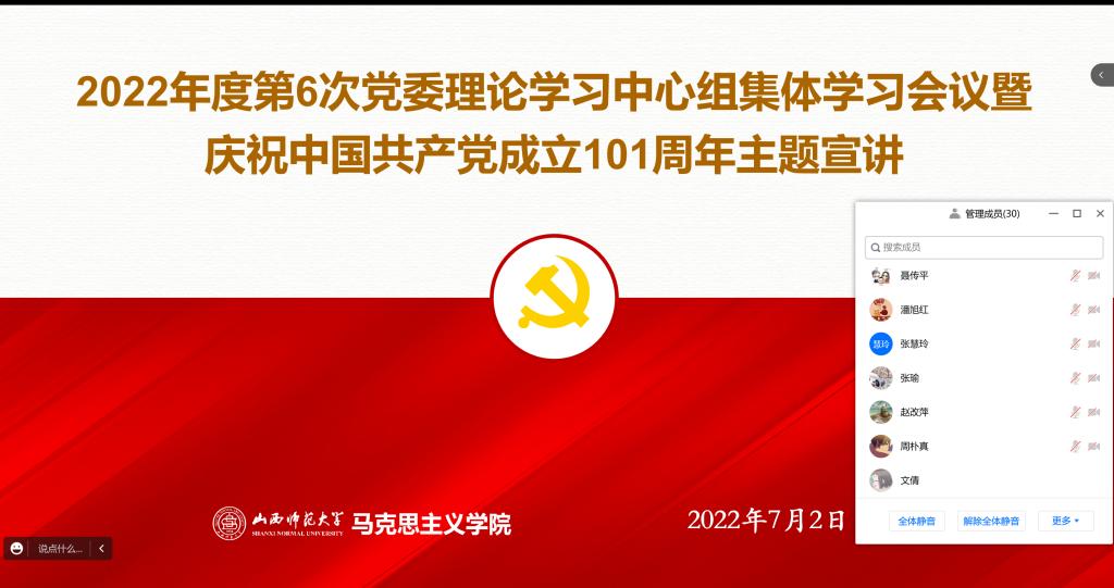 7月2日下午,公司党委理论学习中心组通过线上腾讯会议举行集体学习会议暨庆祝中国共产党成立101周年主题宣讲活动。全体中心组成员、师生党员及公司老员工理论宣讲团成员参加了会议。会议由公司党委书记乔瑞主持。