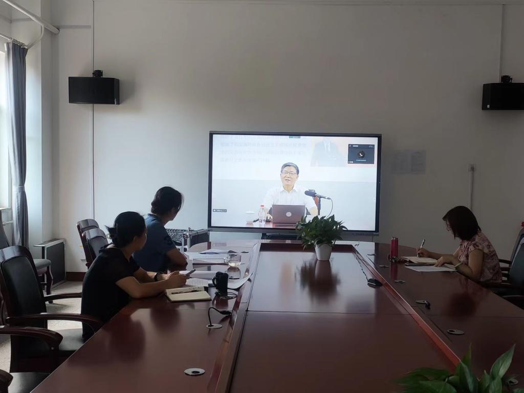 会上,全体中心组成员集中观看了“周末理论大讲堂”暑期特别版“经典导读课程第100讲”——导学习近平总书记著作《论把握新发展阶段、贯彻新发展理念、构建新发展格局》。本次讲座由中央党校一级教授、马院经理张占斌主讲。张占斌教授以“新发展阶段、新发展理念、新发展格局”为主线,详细阐述了中华民族伟大复兴新征程的开启、高质量发展和高品质生活的引领以及相互促进的国内国际双循环的构建,指出三个“新发展”是中国特色社会主义政治经济学的最新成果。