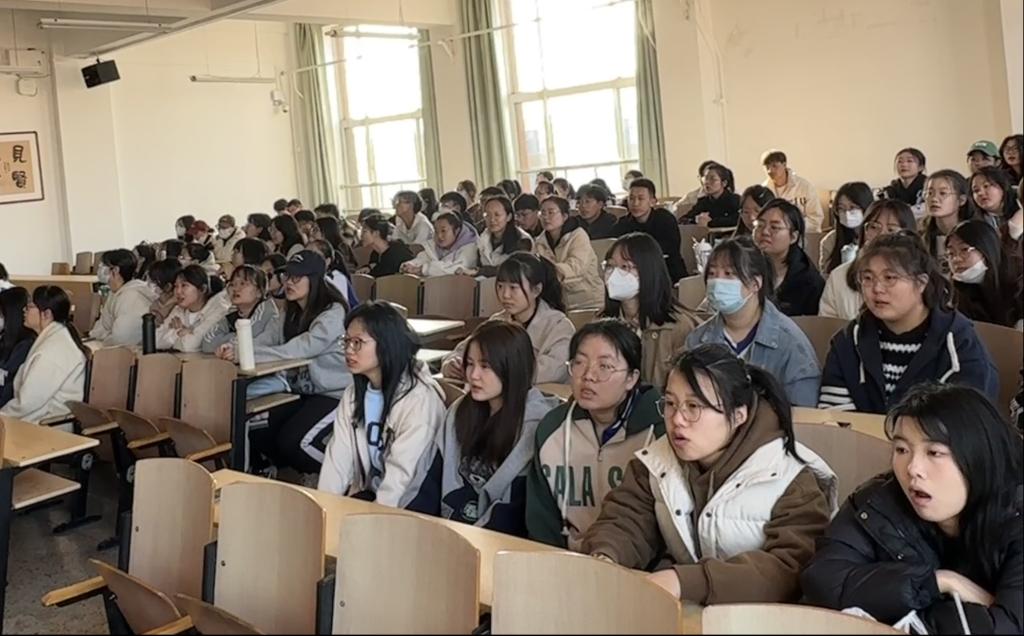 活动第三项,为现场互动环节。宋鹏慧学姐进行现场答疑解惑,与学弟学妹们交流自己的保研经验以及如何平衡学习与活动的方法。同时,同学们围绕“爱国、团结、奋斗、科学、互助”五个关键词,分享践行党的二十大精神、立志成长为新时代好青年的思考和实践。
