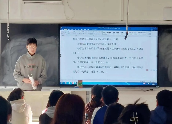 首先杜辉老师阐明了召开本次班会的目的和期望,通过学习党的二十大报告,使我们明确了党波澜壮阔的历史进程与党的学习一直同向、同行。同学们理解了学习的重要性,本次主题班会杜老师从学会学习着手,希望同学们要学会处理大学阶段的各种学业矛盾,学会学习。然后班长高慧玲介绍分享交流流程,同学们有序上台分享学习和活动的经验。学委吴东权传达了beat365唯一官网推荐免试研究生的方案,同学们明确了推免的具体标准和要求,激励同学们向着高标准、高要求努力学习。最后,杜老师指出今天努力学习,是为了明天能够自由地选择自己想要的生活,真正的自由一定是出现在对必然的清楚把握之后的。希望大家都通过自己的努力,成长成材,将来为我们第二个百年奋斗目标的实现贡献自己的一份力量。