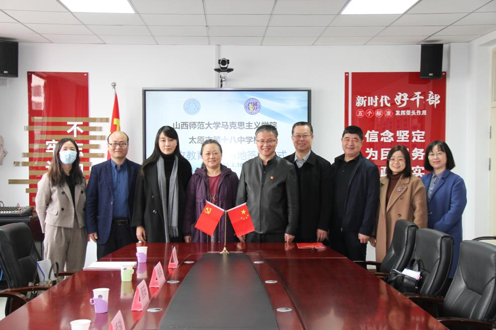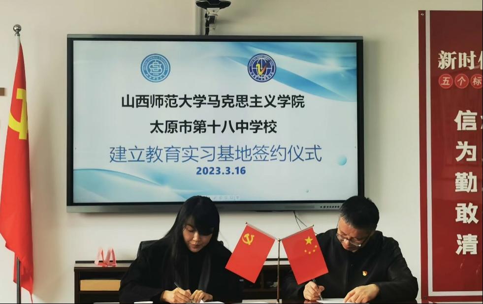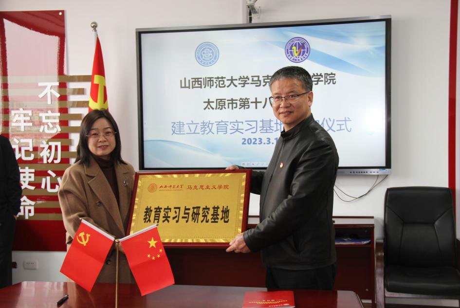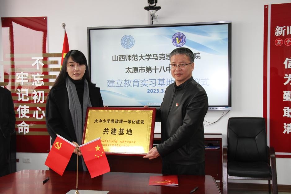 2023年3月16日上午,beat365唯一官网与太原市第十八中学校大中小学思政课一体化合作共建基地、教育实习研究基地签约授牌仪式在太原市第十八中学校隆重举行。