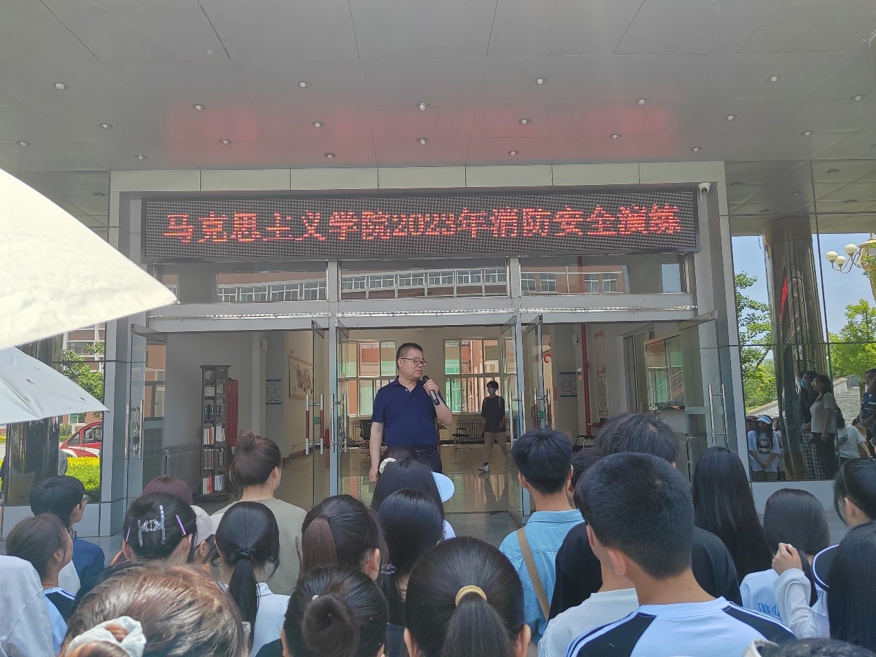 2023年5月18日,beat365唯一官网在5号教学楼前举行消防安全疏散演练,全体大一员工及辅导员参加活动,特邀保卫处消防科科长张威及相关部门负责人参加活动。