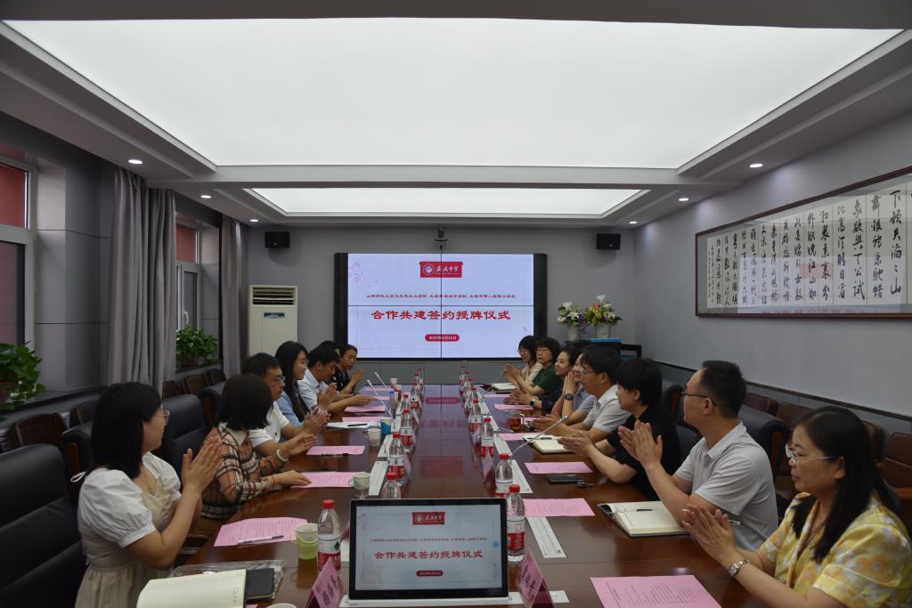 充分交流后,学院与太原市成成中学校、太原市第二实验小学分别签署了合作共建协议。党委书记乔瑞、党委副书记杜辉、副经理赵秀芳分别代表beat365唯一官网授予太原市成成中学校、太原市第二实验小学“大中小学思政课一体化建设共建基地”“志愿服务基地” “教育实习与研究基地”牌匾。