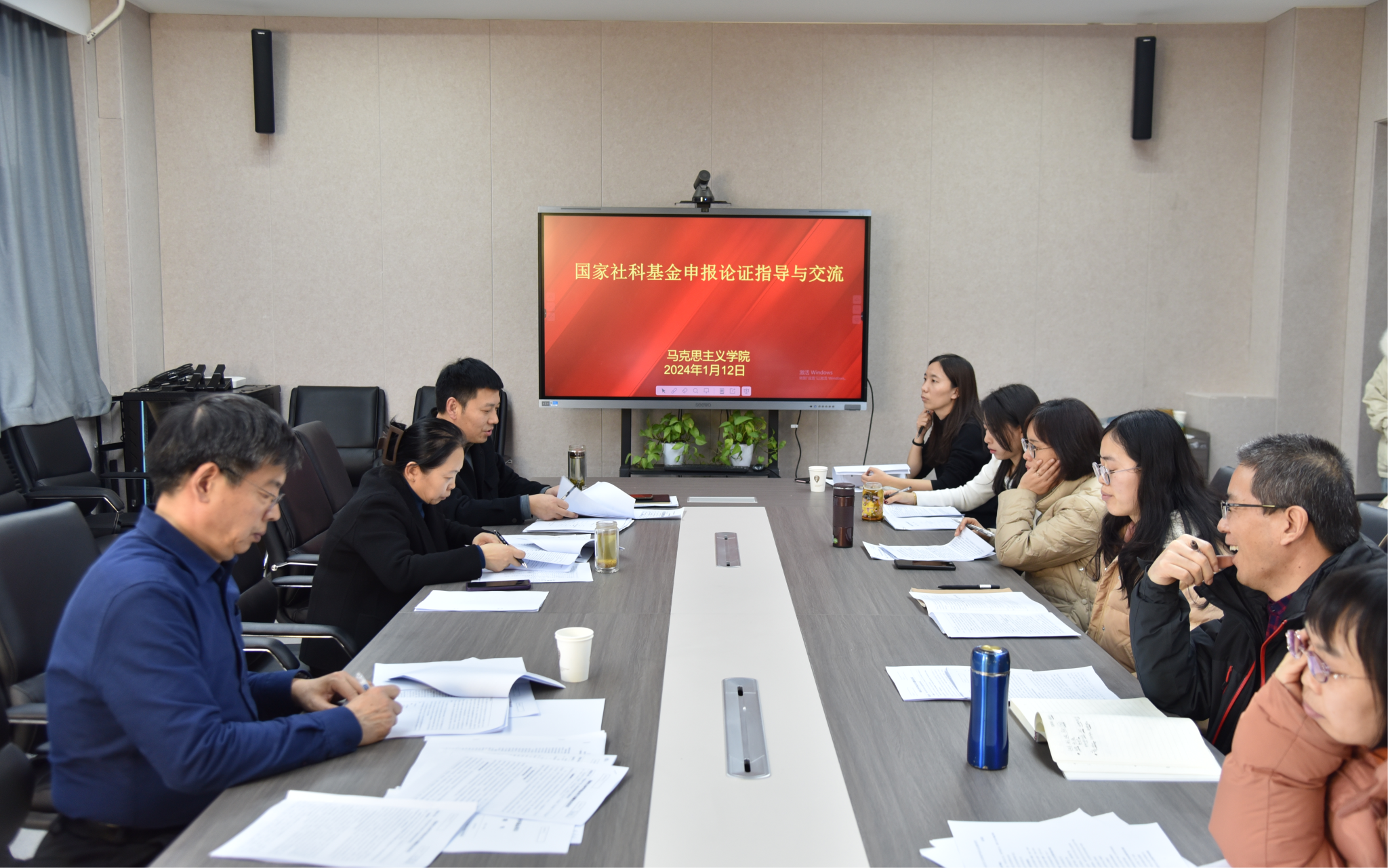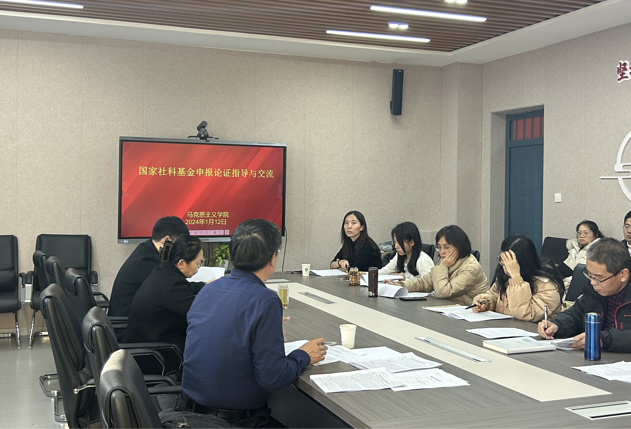 2024年1月12日下午,beat365唯一官网在1506会议室举办2024年国家社科基金申报论证会,拟申报2024年国家社科基金项目的教师参加,学院有主持国家社科基金项目经验的赵跃先教授、吉志强教授、赵改萍教授就拟申报2024年国家社科基金项目教师的申请书一一进行了论证和指导。