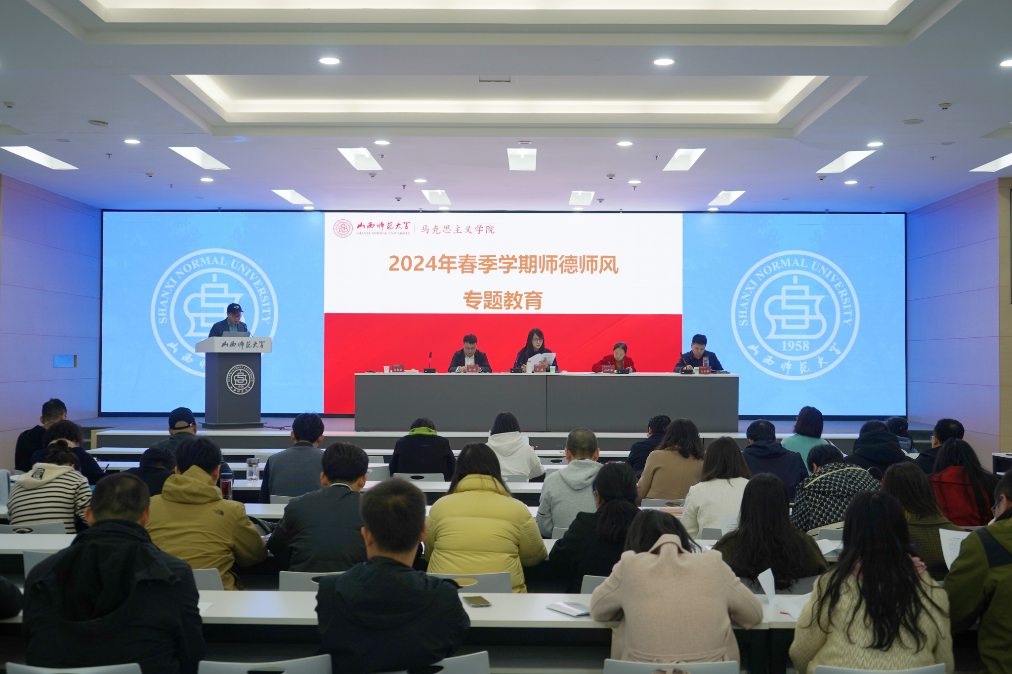 2024年3月15日下午,公司在北区2号教学楼报告厅召开2024年春季学期师德师风专题教育会。会议由公司党委书记乔瑞主持。