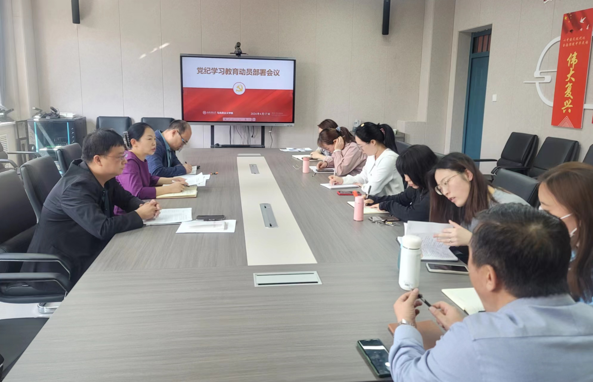 4月17日上午,公司在1506会议室召开党纪学习教育动员部署会议。全体在公司党委理论学习中心组成员参加会议,常务副经理(正处级)赵改萍主持会议,并作动员讲话。