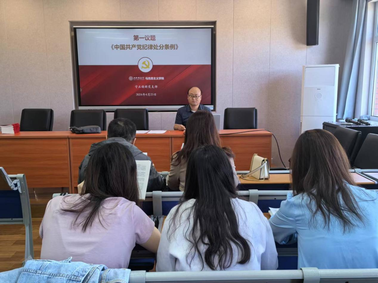 支部书记杨海亮同志传达了学校、公司党纪学习教育动员部署会议精神,宣读了《公司党委党纪学习教育工作方案》,支部党员轮流逐字逐条学习了《中国共产党纪律处分条例》总则部分。围绕如何认识党的纪律建设在推动解决大党独有难题、健全全面从严治党体系中的地位作用进行交流研讨。