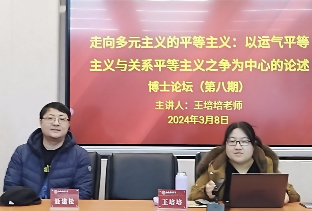 首先,王培培老师作了题为《走向多元主义的平等主义:以运气平等主义与关系平等主义之争为中心的论述》的报告。她从运气平等主义的起源、代表人物、内部争论出发,指出运气平等主义是西方平等理论的最新发展之一,它的内部争论构成了其基本的理论概貌。