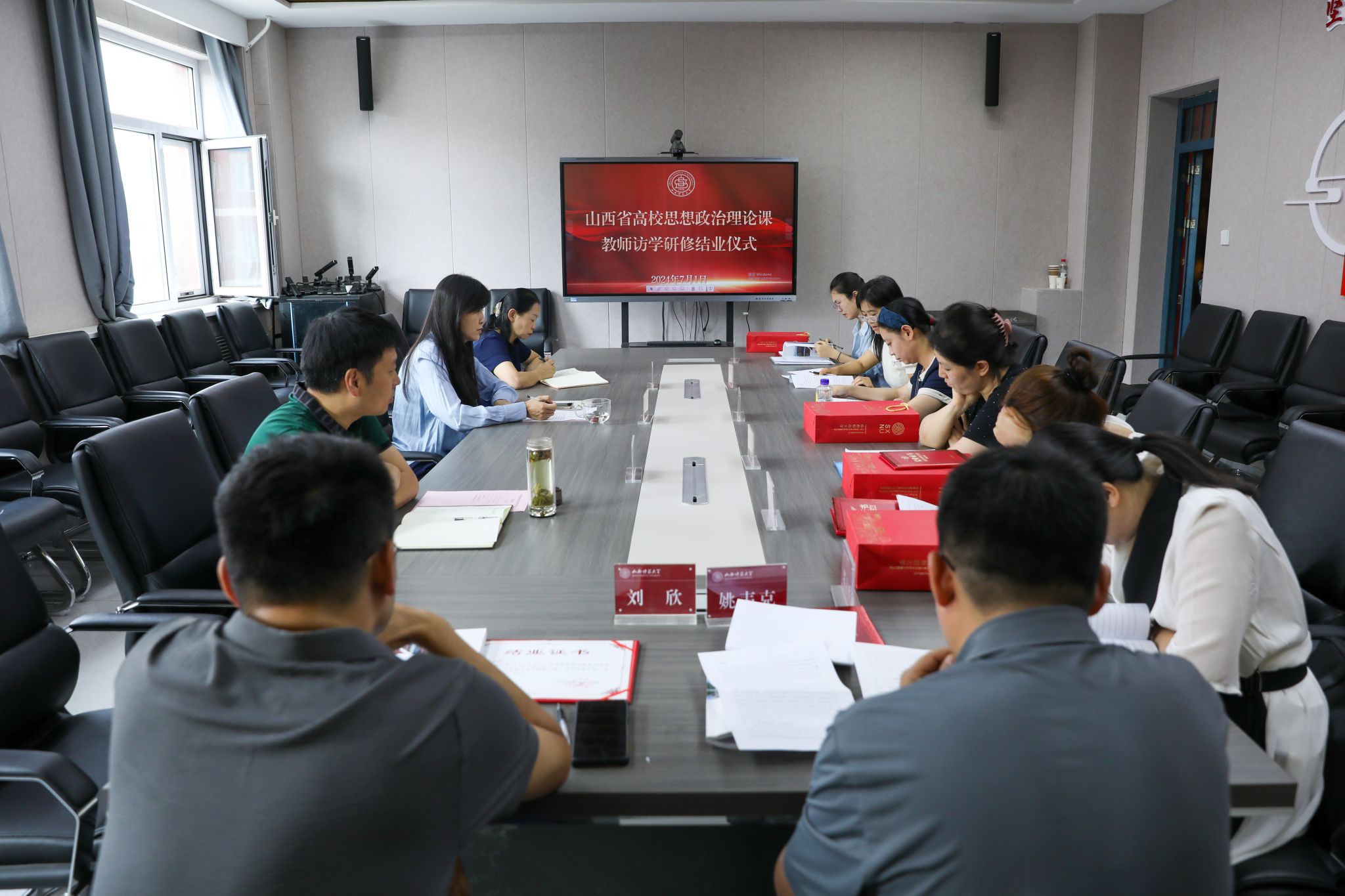 7月1日上午,公司举行山西省高校思政课教师访学研修结业典礼。典礼由公司党委书记乔瑞主持,常务副经理赵改萍、副经理吉志强及来自全省8所高校的思政课教师访学研修学员。