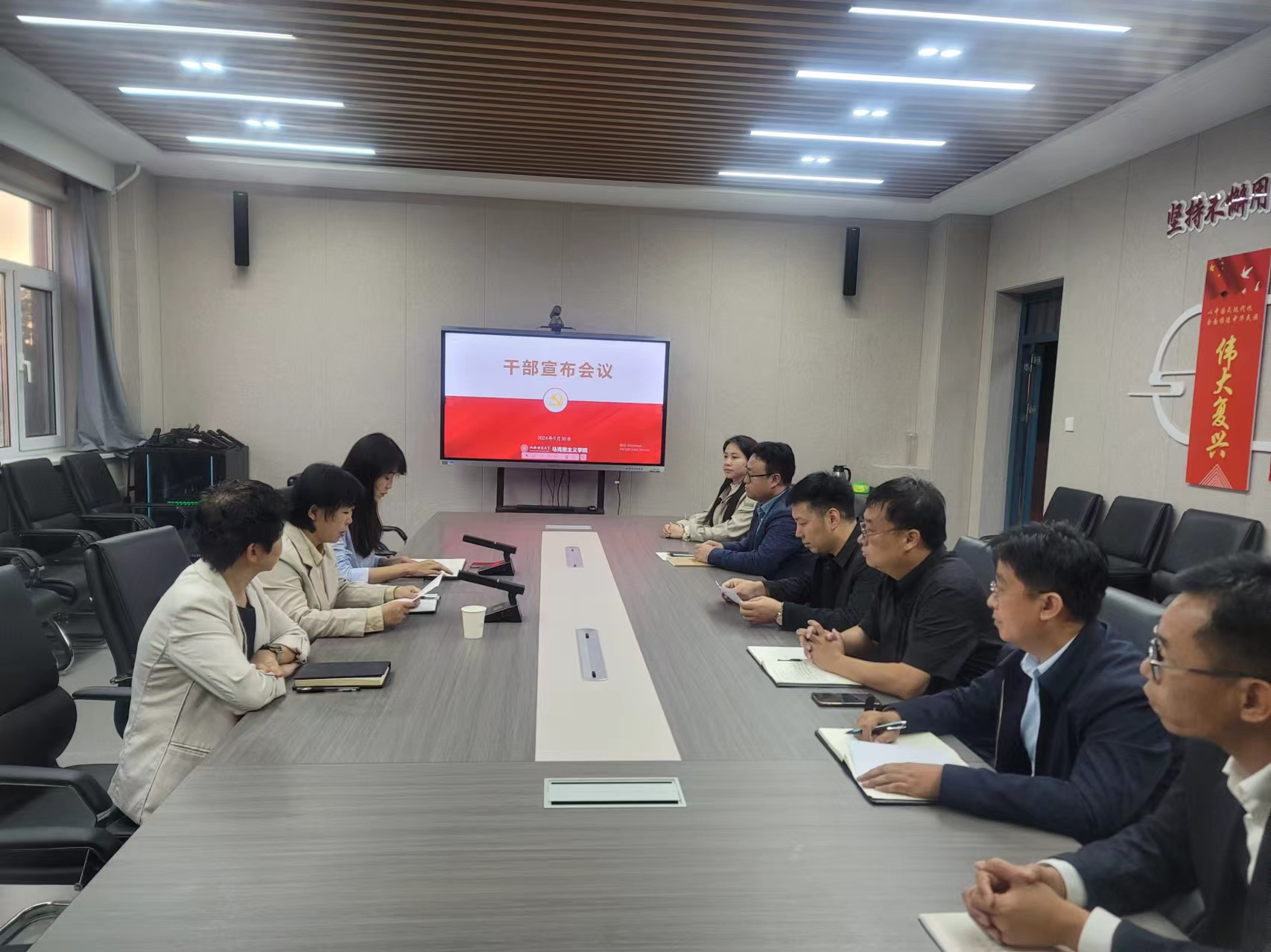 2024年9月30日下午,公司在南区1506会议室召开干部宣布会议。公司党委组织部副部长李企婷出席会议,公司党政领导班子成员、在校教职工参加会议。会议由公司党委书记乔瑞主持。