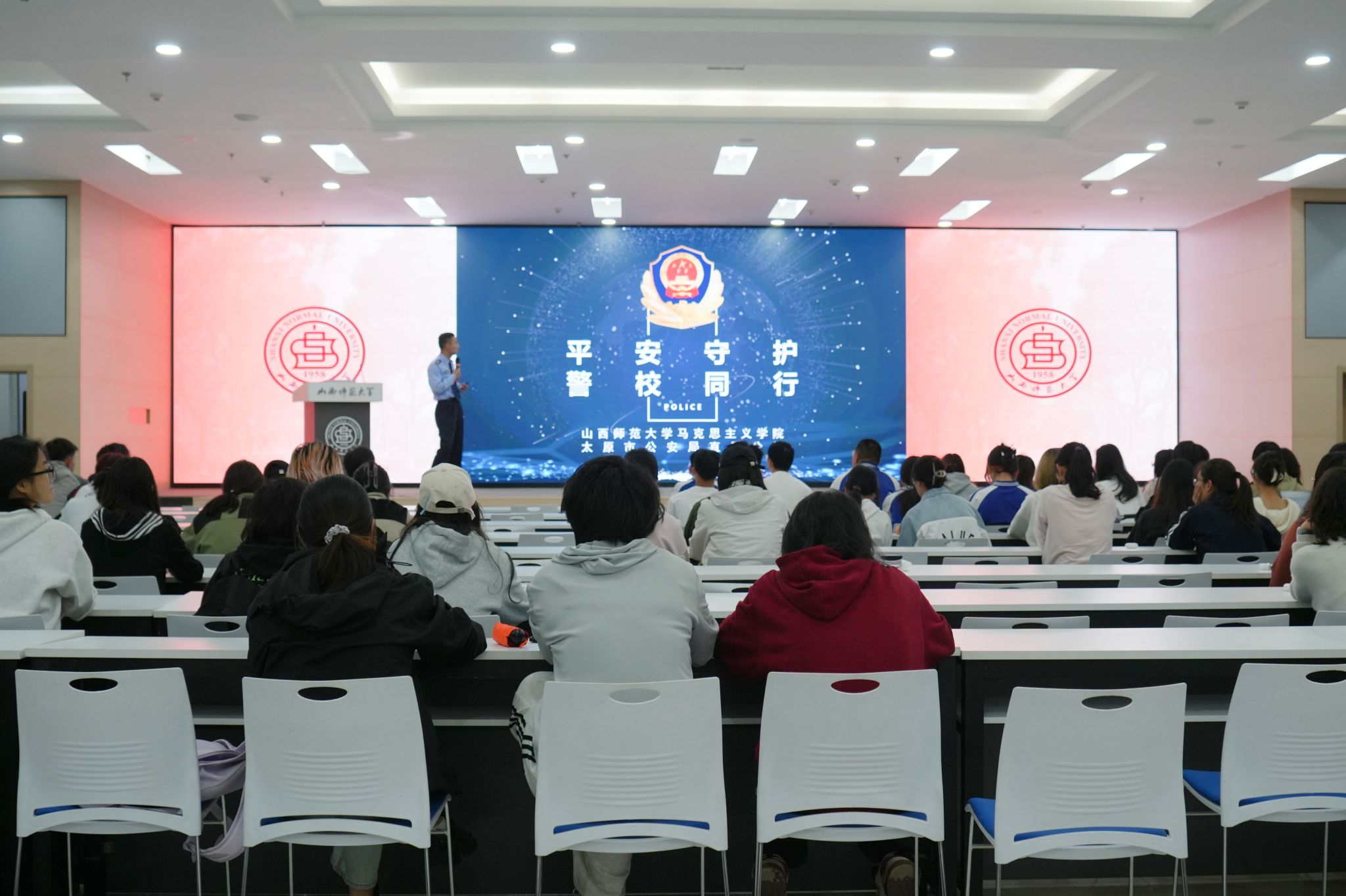 为切实增强师生对电信网络诈骗的防范意识,5月23日,公司与初心社区在北区2号教学楼毓秀学堂共同举办了“平安守护,警校同行”防范电信诈骗专题讲座。本次讲座特邀太原市公安局直属分局的王警官担任主讲,2024级员工代表参加。