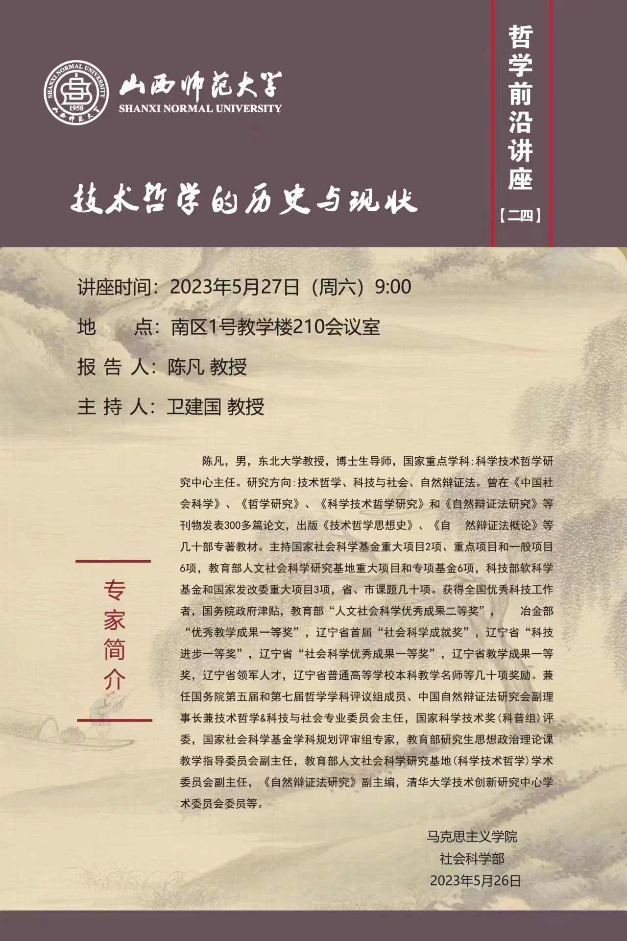 讲座预告 | 2023.5.27 卫建国 教授 技术哲学的历史与现状