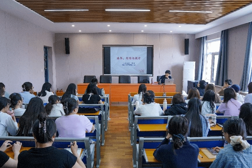 周慧教授以《读书、写作与提升》为题,结合多年指导员工和编辑审校的经验,从写作、文献阅读和图书推荐三个部分介绍了如何进行思考与写作。她强调,首先,论文写作是从“照虎画虎”到“看虎画虎”再到“画出心中虎”的过程,是从简单模仿到深度模仿到丢弃模仿的过程。其次,论文选题、开题和写作准备中,应注意着重关注标题的科学性、结构的逻辑性和严密性以及参考文献的选用,在写作中要重视内容的理论性、思想性、实践性和前瞻性。再次,文献的检索和阅读,既要立足规范词又要兼顾自由词,要学会使用阅读工具和运用三步法进行阅读,让阅读更具有目标性和问题导向。报告最后,周老师向参会老师和同学推荐了相关书籍供大家参考阅读。