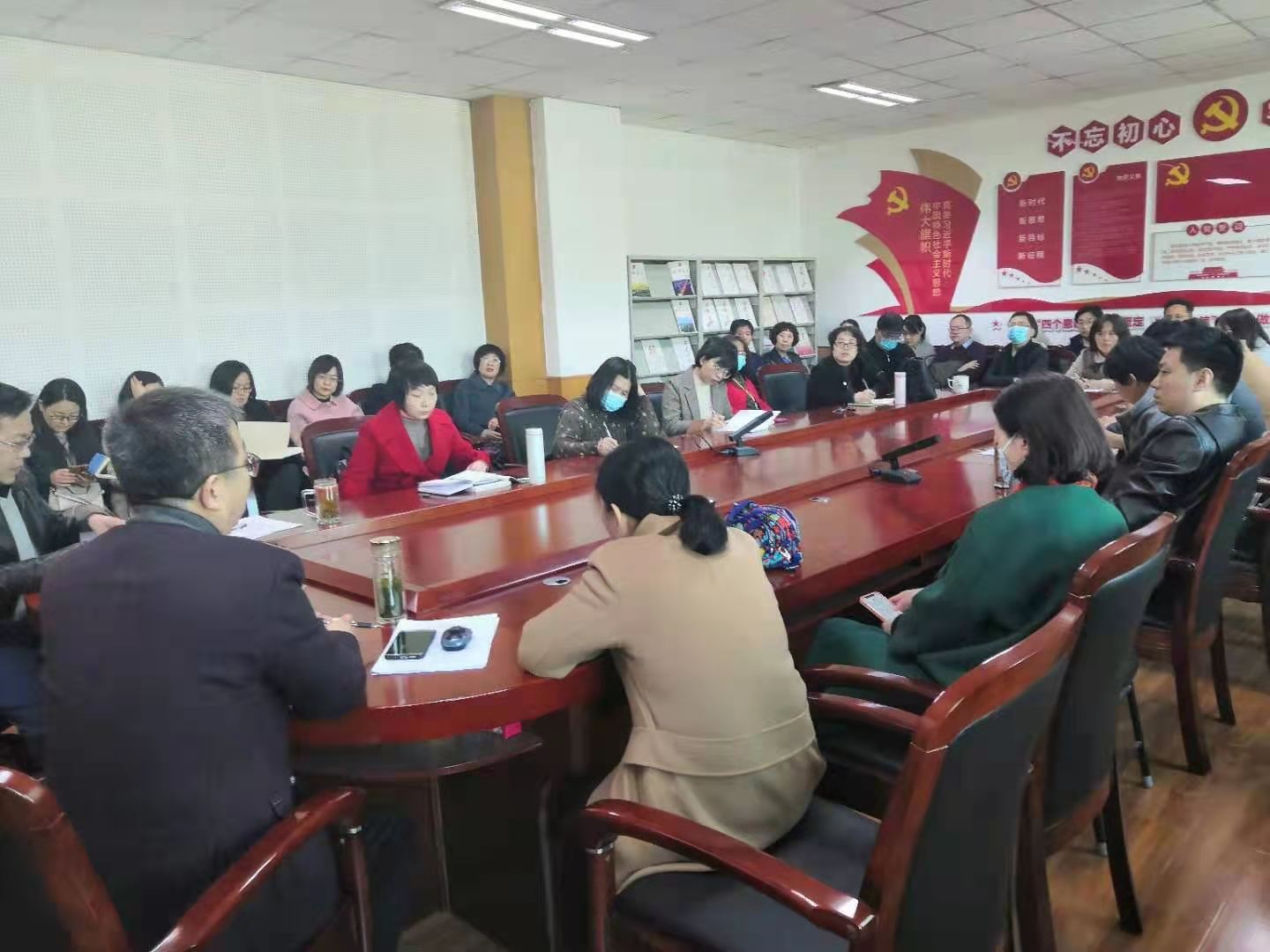 王银书记首先传达了公司党委书记张晓永调研开学准备工作指示精神及学校近期发布的相关文件精神,就公司“四史”学习教育活动、建党100周年理论宣讲活动和本硕员工开学返校工作进行了动员和安排。同时,向大家通报了2020年度公司民主生活会召开的有关情况。他要求全体教职工迅速调整状态,团结一致向前看,担当作为讲奉献,凝心聚力谋发展,携手共创学院更加美好明天,以蓬勃朝气、昂扬斗志、优异成绩迎接中国共产党成立100周年。