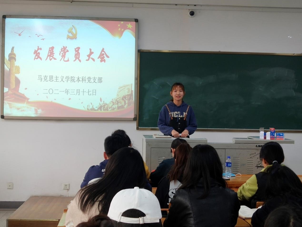 会上,张瑞琴老师公布本次党的发展对象39人名单,随后39名发展对象依次向党组织报告了思想上、学习上、生活上的表现情况,并纷纷表明决心,时刻以一名党员的标准要求自己,争取早日加入党组织。