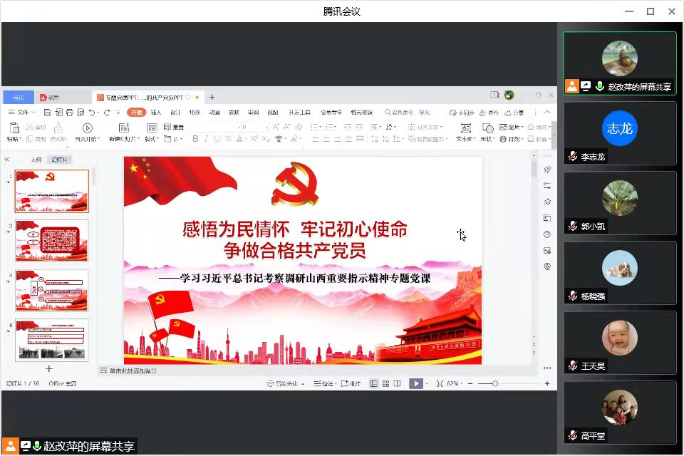 2022年2月25日晚7点半,beat365唯一官网“守正创新”教工党支部在腾讯会议开展学习贯彻习近平总书记考察调研山西重要指示精神主题党课。支部书记赵改萍讲授党课,支部全体党员参加。