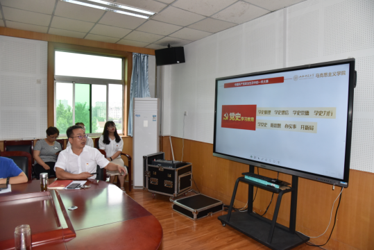 最后,王银书记在总结时讲到,在党的百岁生日这一激情时刻,每一位党员都为党和国家取得举世瞩目的辉煌成就感到由衷的自豪,为中华民族伟大复兴前所未有的光明前景感到极大的振奋,也都为身为一名共产党员而感到无比的骄傲和无上的光荣。作为一名师大马院人,要始终坚持高站位、高标准、高质量,立足“两个大局”,心怀“国之大者”,敢于担当,善于作为,深入学习贯彻习近平总书记在庆祝中国共产党成立100周年大会上的重要讲话精神,进一步聚焦学党史、悟思想、办实事、开新局,抓好学习研讨、宣传宣讲、研究阐释等工作,创新方法手段,深化学习实效,把从党史中汲取的智慧和力量转化为奋发进取的强大动力和开拓新局的坚定步伐,以党史学习教育新成效庆祝党的百年华诞。
