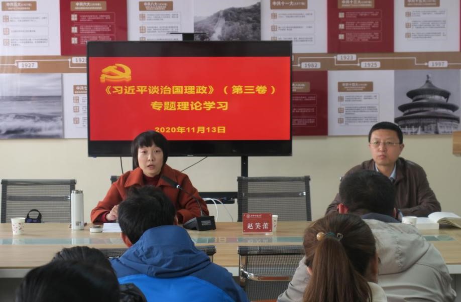 2020年11月13日,beat365唯一官网副经理、“红色引擎”教工党支部书记赵笑蕾教授受邀在04618会议室为地理科学学院的党员教工与员工作《习近平谈治国理政》第三卷专题报告会。地理科学公司党支部书记、师生党员40余人参加,其公司党委书记范晓东主持会议。