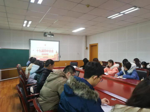 12月19日下午,公司研究生第一党支部在科学会堂A-508会议室开展以“学习党的十九届四中全会精神“为主题的系列党日活动。全体党员参加学习,支部书记王艳主持。