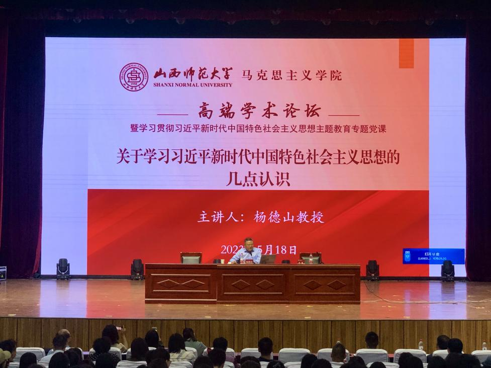 杨教授围绕习近平新时代中国特色社会主义思想的主要内容和学习方法进行讲解。他运用多样的历史史实、扎实的文献功底的深入解读三个重大时代课题、“两个结合”等主要内容,强调要从把握好理论定位、历史方位、主要矛盾三个方法学好习近平新时代中国特色社会主义思想。整场报告极大地开阔了师生们的学术视野,对于学深悟透习近平新时代中国特色社会主义思想具有重要指导意义。