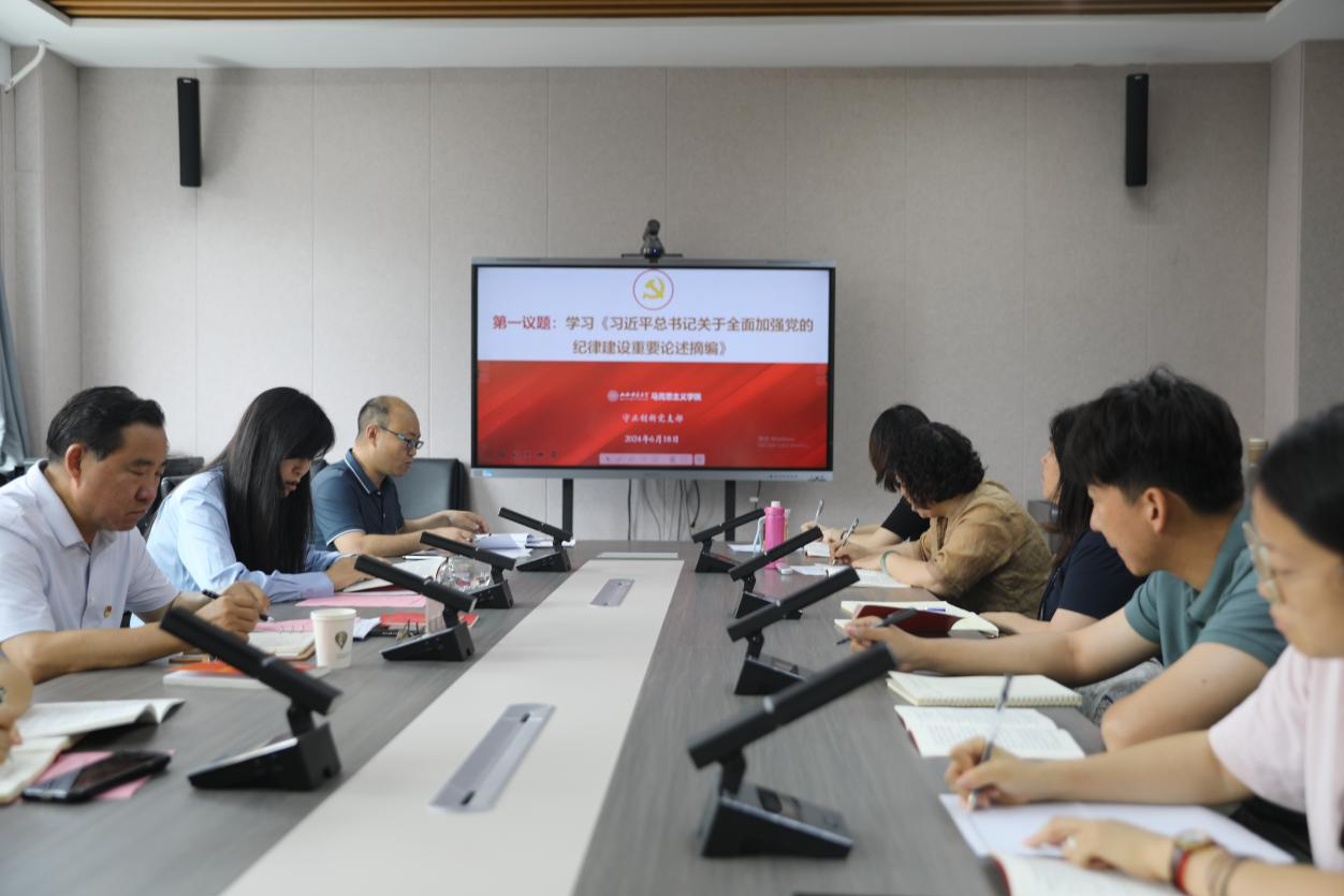 其次,党支部书记杨海亮同志结合违犯党纪典型案例,带领大家学习《中国共产党纪律处分条例》第八章至附则部分的内容。樊婧、艾鹏、申一涵、杨源4位同志围绕上述学习内容结合各自教研实际进行交流发言。
