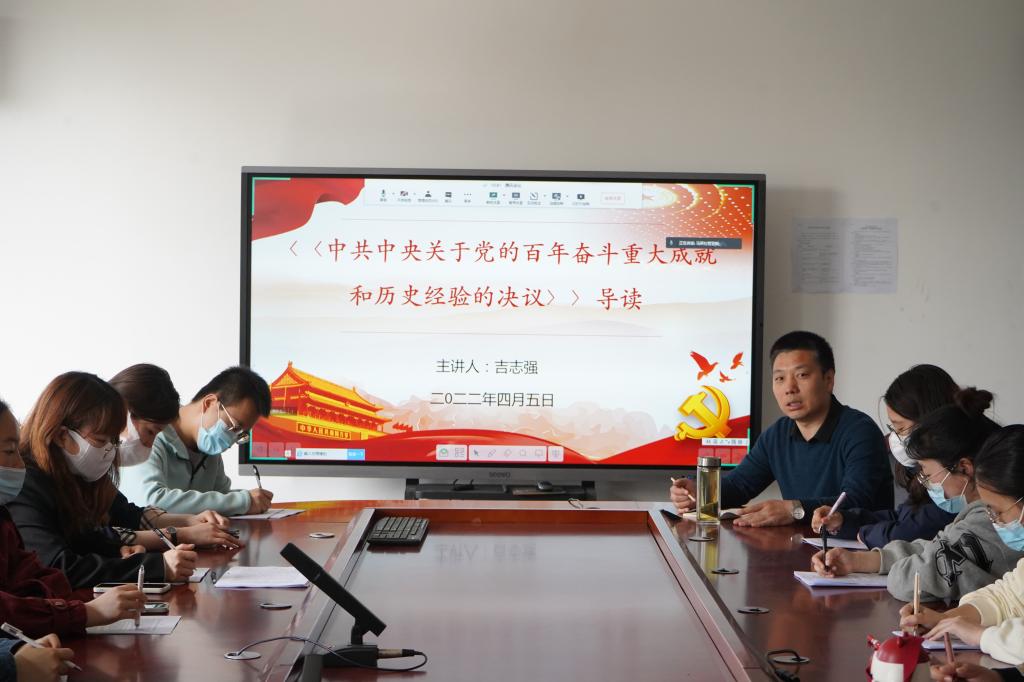 党的十九届六中全会审议通过的《中共中央关于党的百年奋斗重大成就和历史经验的决议》,是一篇马克思主义的纲领性文献。为了丰富同学们的校园生活,提高同学们的政治素养,引导员工爱上阅读,养成关注时政的良好习惯,公司特邀思政系主任吉志强于4月5日上午10点,在学院1506会议室举办了以《中共中央关于党的百年奋斗重大成就和历史经验的决议》导读为主题的读书交流会。