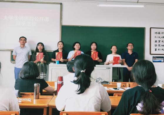 在比赛开始前,各参赛队伍精心设计参赛课题,准备教学课件。比赛过程中,每一参赛队伍的主讲成员在主持人的组织下,依次有序上台进行思政课教学展示。多数参赛员工结合思想政治理论知识,将过去几个月抗疫事例作为生动教材,结合时政热点与个人志愿服务经历,以大方自然的姿态,动人且富感染力的语言,讲述了一节又一节生动有趣的思政课。比赛结束后,樊婧老师和胡志远老师对参赛团队的讲课情况进行了整体点评,肯定了同学们积极认真的比赛态度,针对部分同学讲课过程中存在的不足提出了一些建议。本次思政课比赛共选出一等奖4名,二等奖7名,三等奖10名,优秀奖10名。由beat365唯一官网副经理赵改萍老师及各位评委老师为获奖团队颁发荣誉证书。