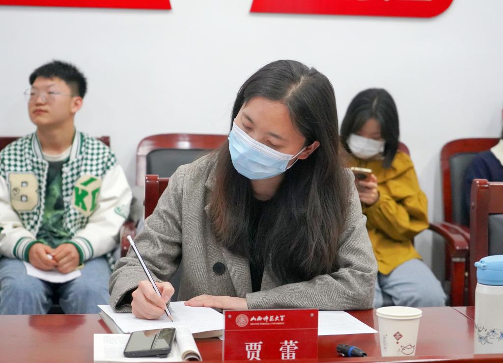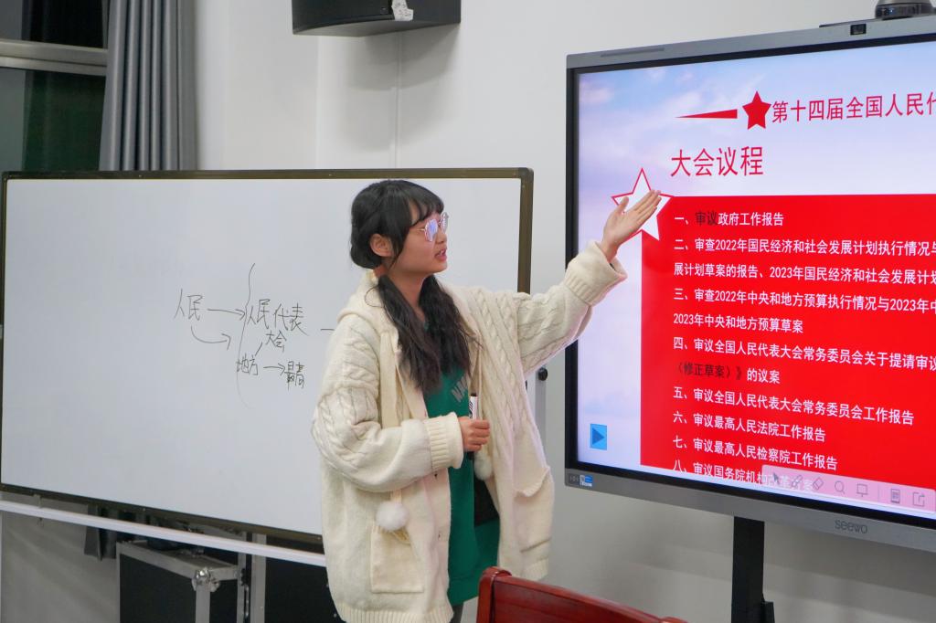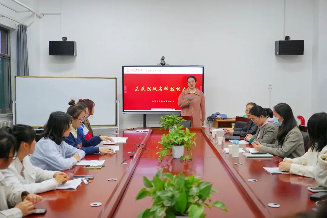 为深入贯彻落实习近平总书记在学校思想政治理论课教师座谈会上重要讲话精神,进一步加强公司学子教学基本功和能力训练,公司于4月20日在南区1号楼506会议室举办了未来思政名师技能大赛,本次大赛由习近平新时代中国特色社会主义思想教研室主任黄雪丽、本科教学秘书李丽丽和优秀思政课教师贾蕾担任评委。