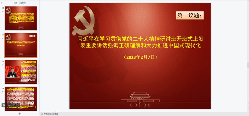党的二十大是在全党全国各族人民迈上全面建设社会主义现代化国家新征程、向第二个百年奋斗目标进军的关键时刻召开的一次十分重要的大会。大会报告全面总结了过去五年的工作和新时代十年的伟大变革,深入分析了国内国际形势,系统阐述了开辟马克思主义中国化时代化新境界、新时代新征程中国共产党的使命任务等重大理论和实践问题,科学谋划了未来五年乃至更长时期党和国家事业发展的目标任务和大政方针。求真力行党支部将继续通过专题辅导、交流研讨等形式,运用《党的二十大报告学习辅导百问》等辅导材料,进一步学习党的二十大报告,深入领会党的二十大精神的丰富内涵、精神实质、重大意义。